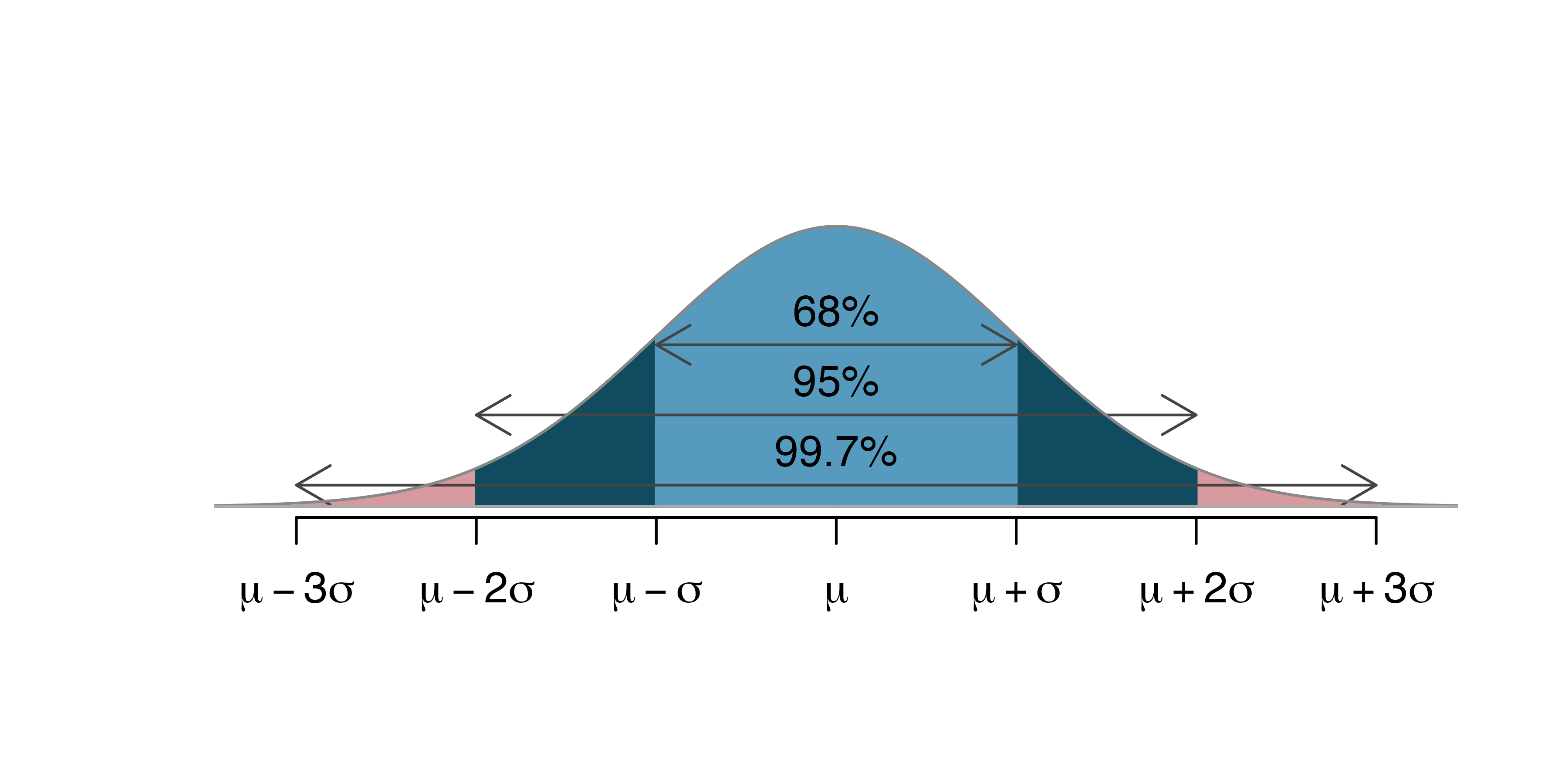 \[ N(\mu, \sigma) \] The standard normal distribution \(N(\mu = 0, \sigma = 1)\) is plotted on the previous slide.
