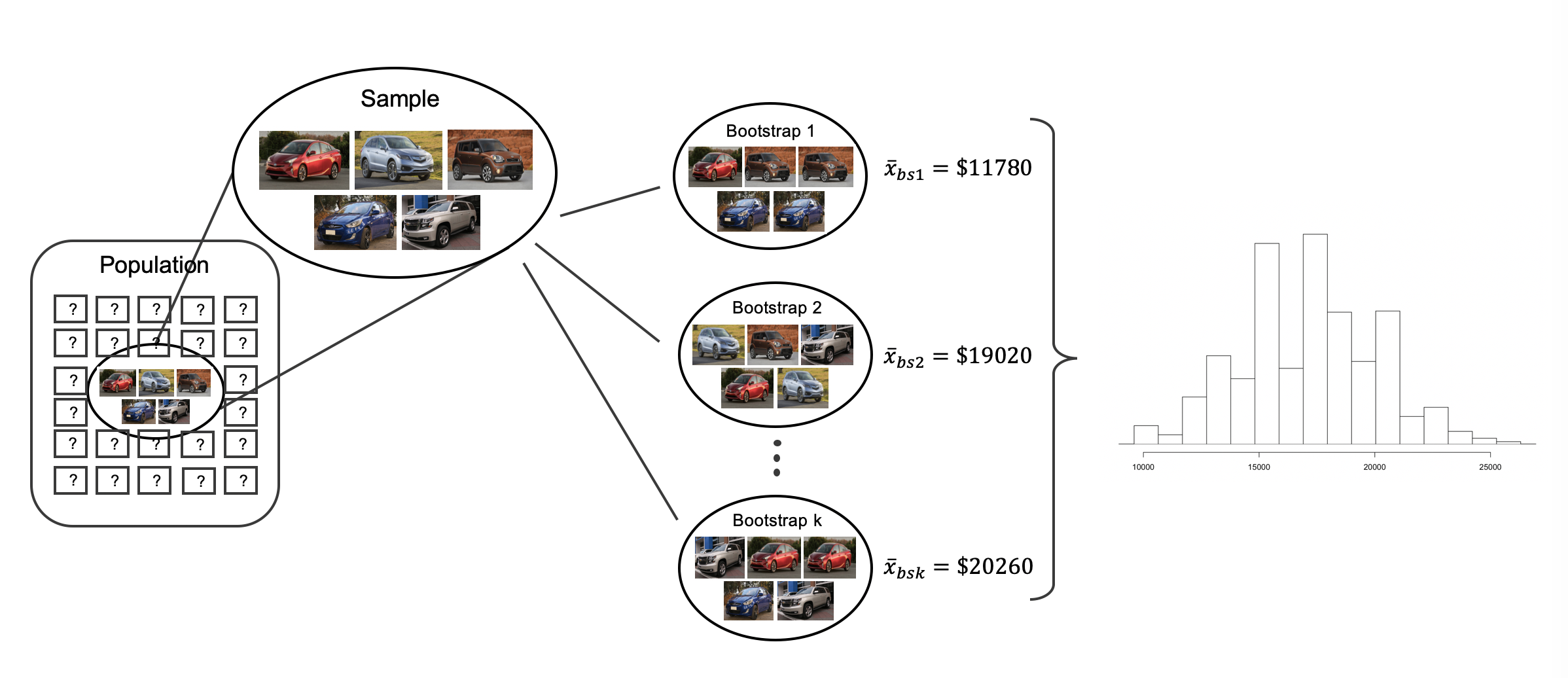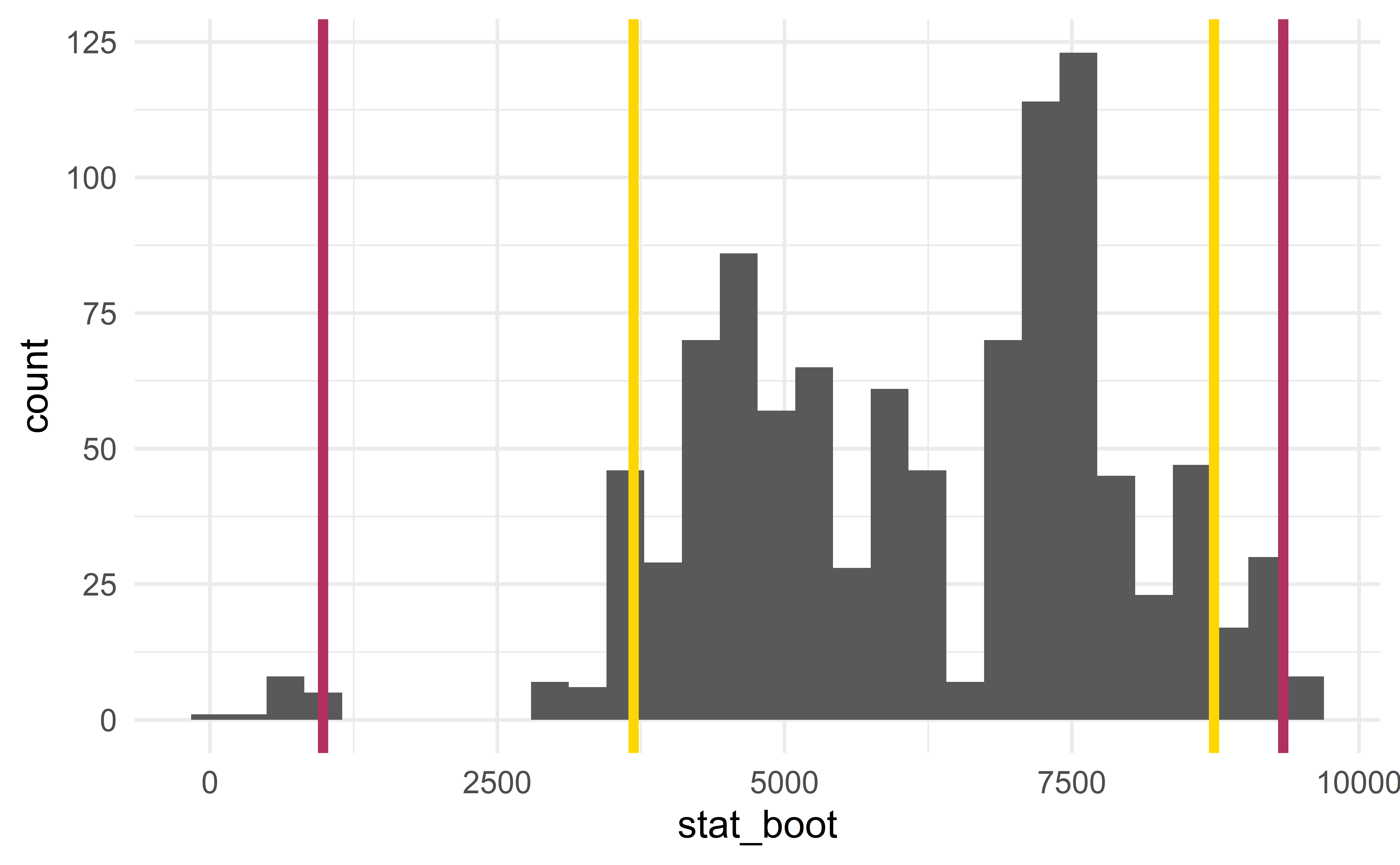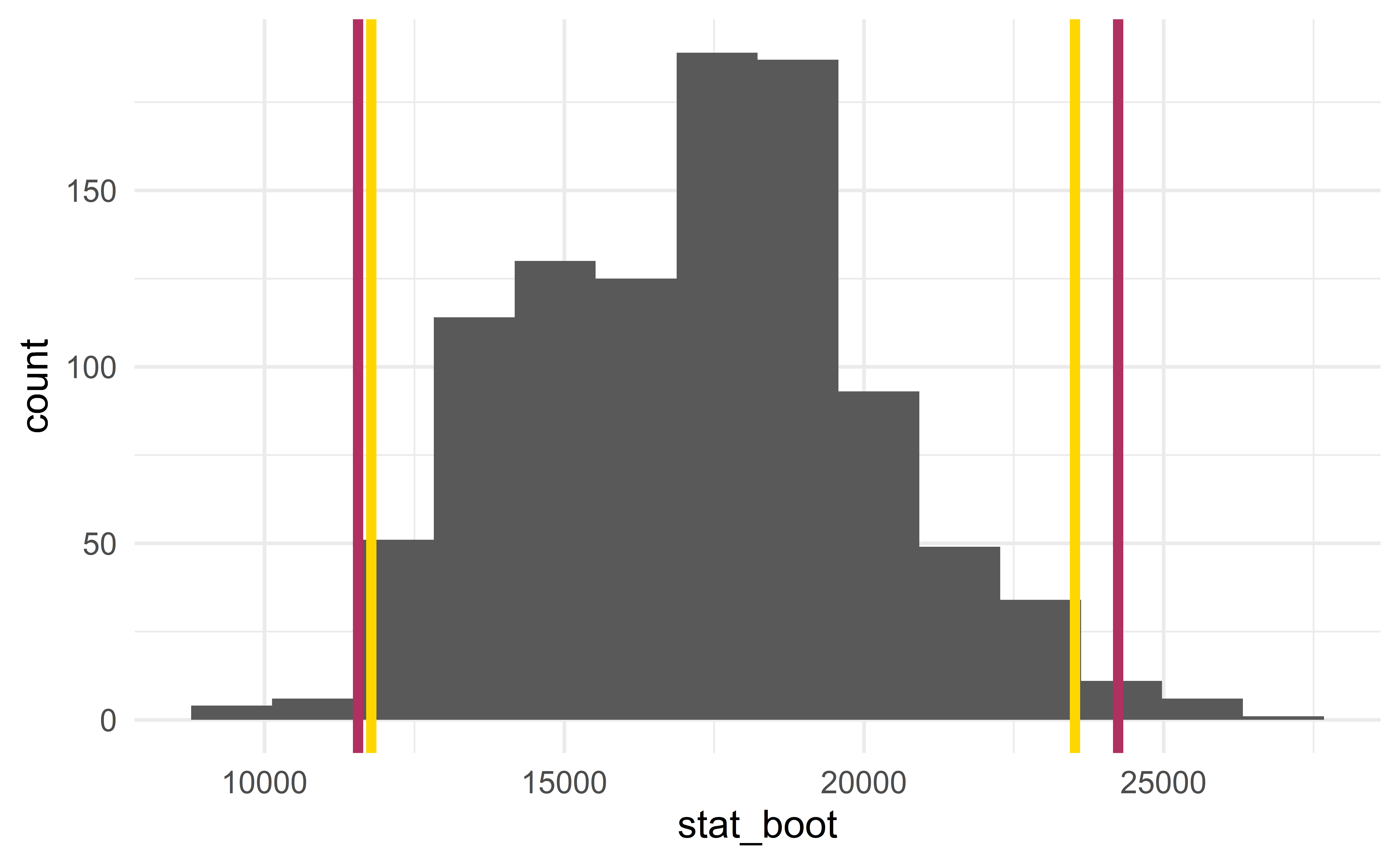 Bootstrap samples \(\Rightarrow\) sampling distribution \(\Rightarrow\) CI
