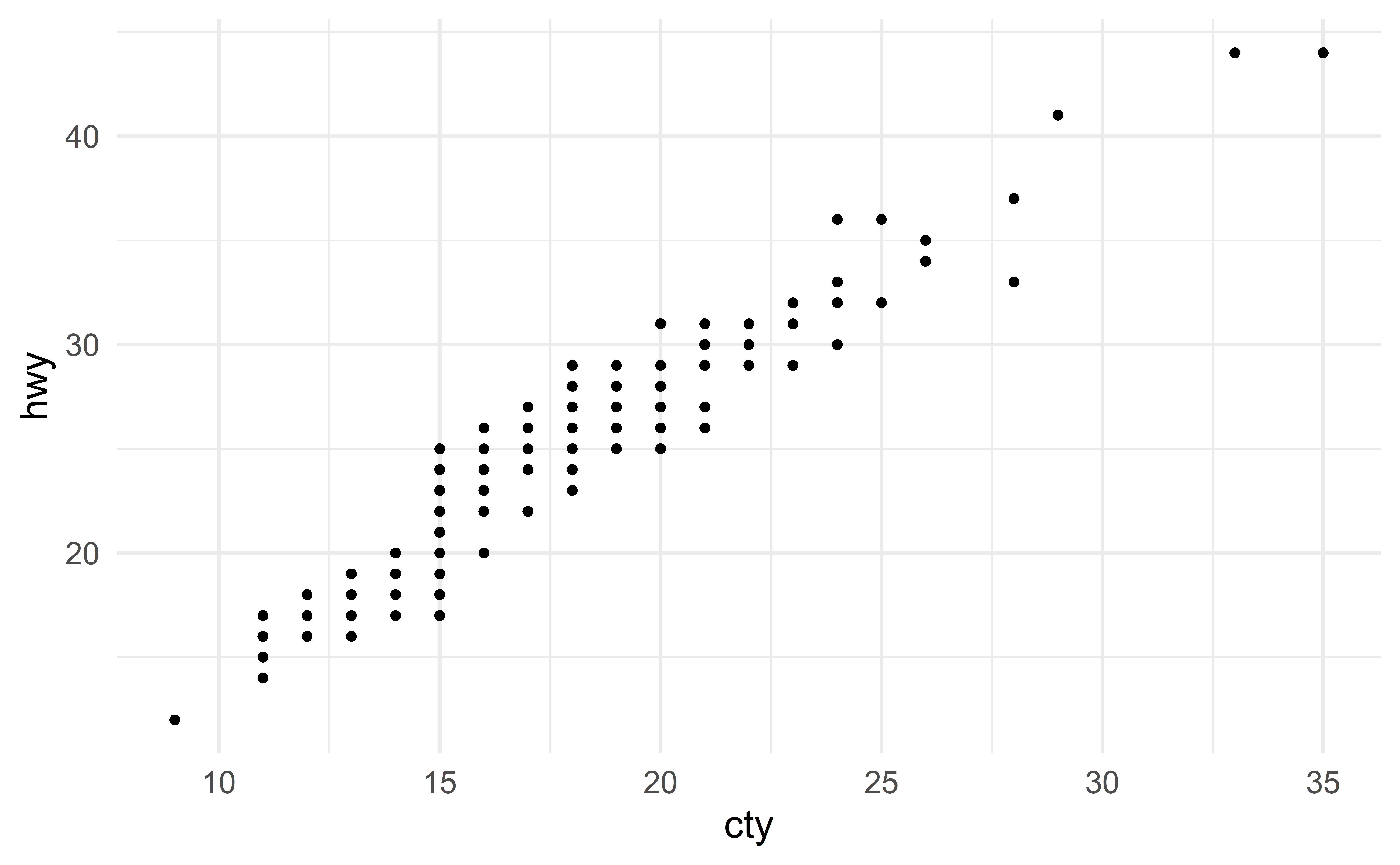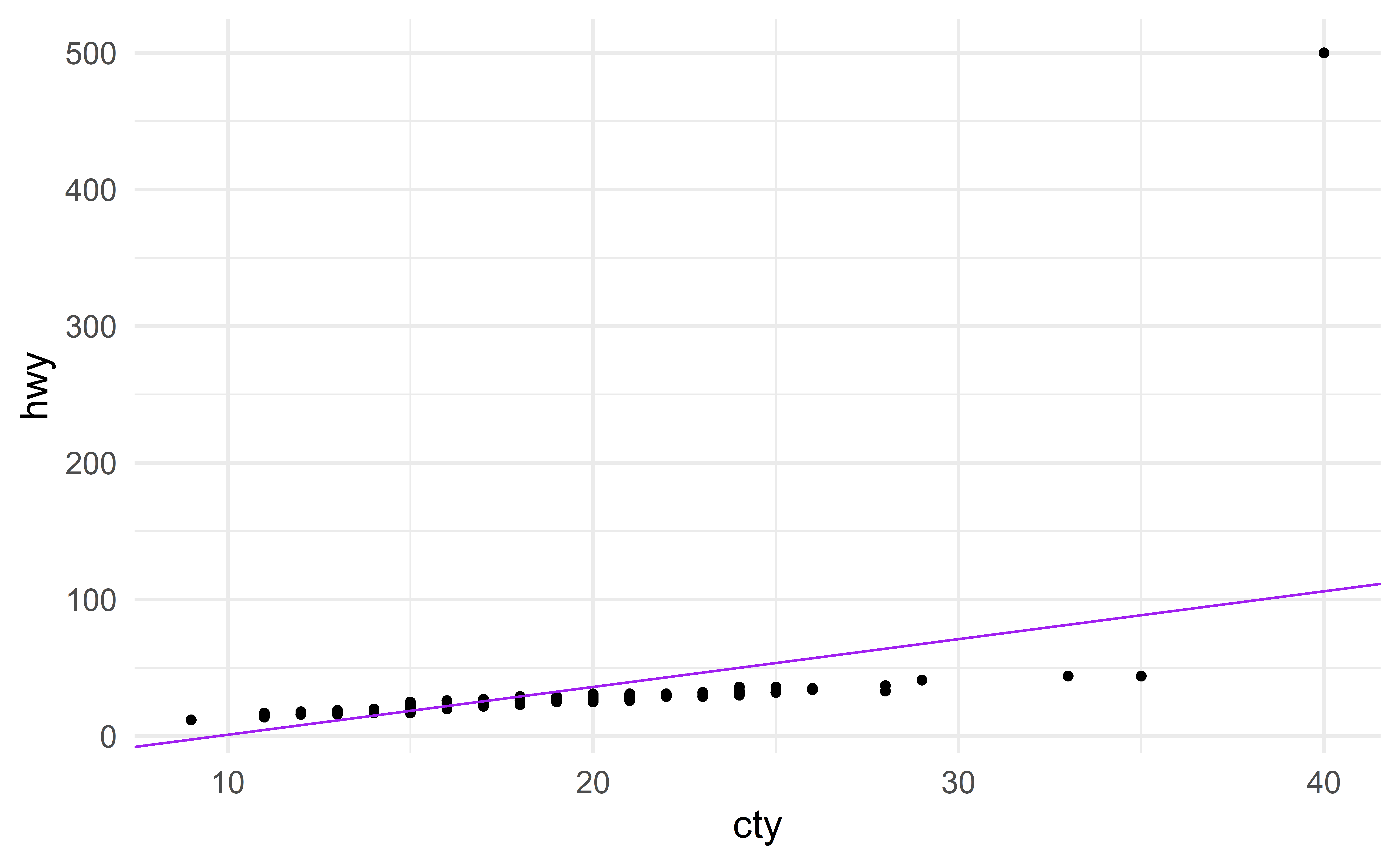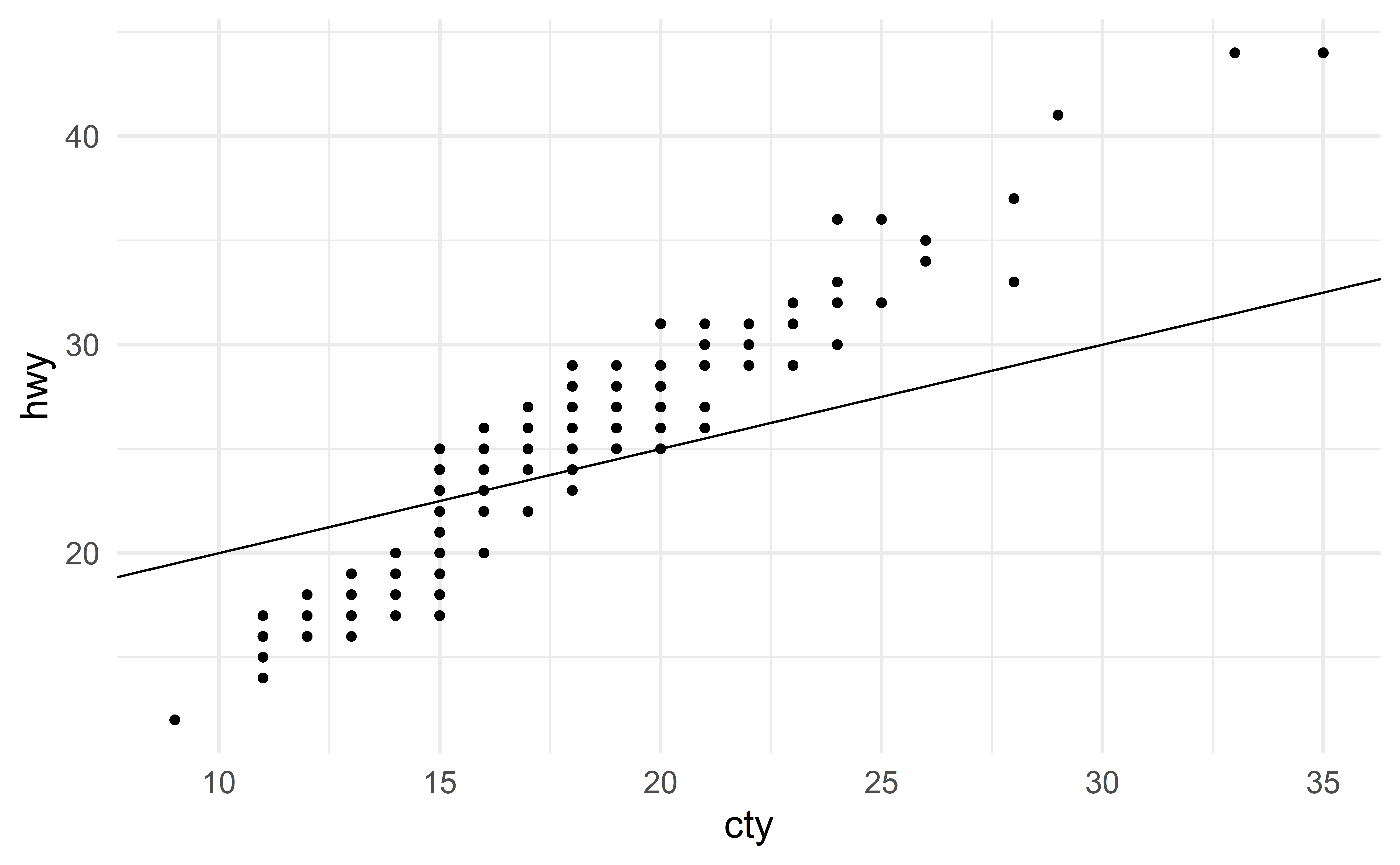 Imagine there is a new vehicle with \(\text{cty} = 30\). Instead of measuring its hwy (expensive), we use our model to estimate it. Using the “good” model gives the following estimate
