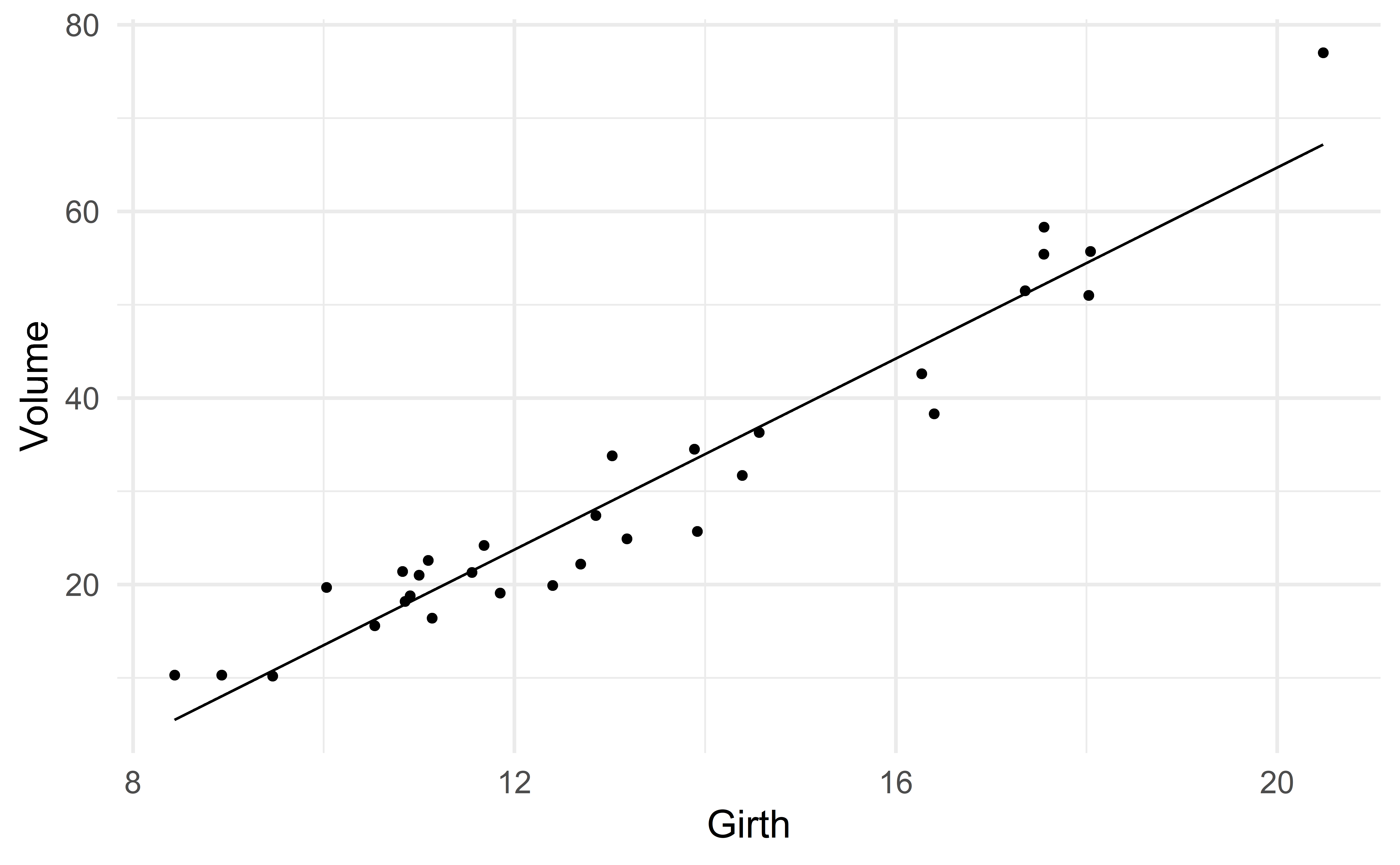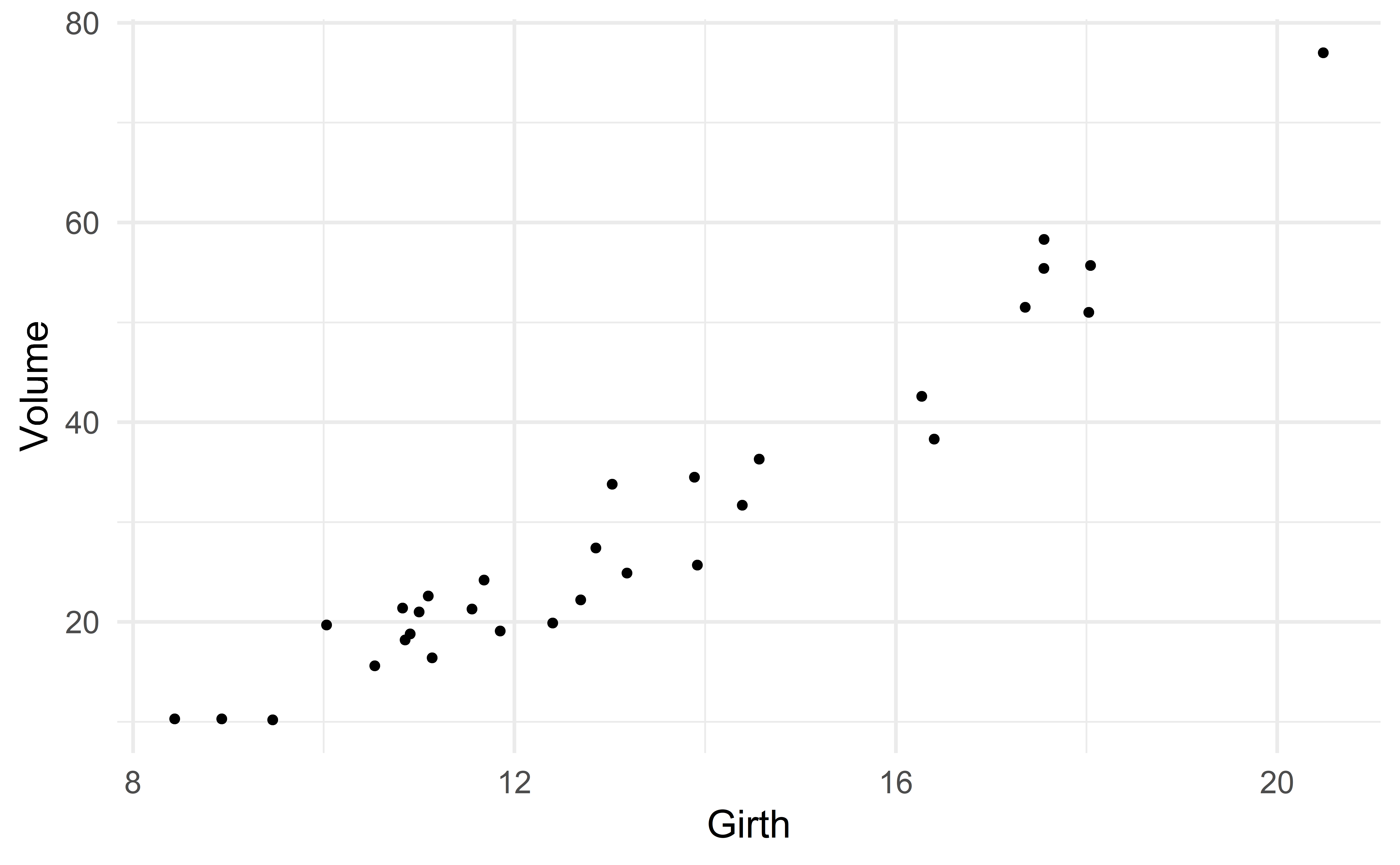 \[ \text{Volume} \approx \beta_0 + \beta_1 \text{girth} \]